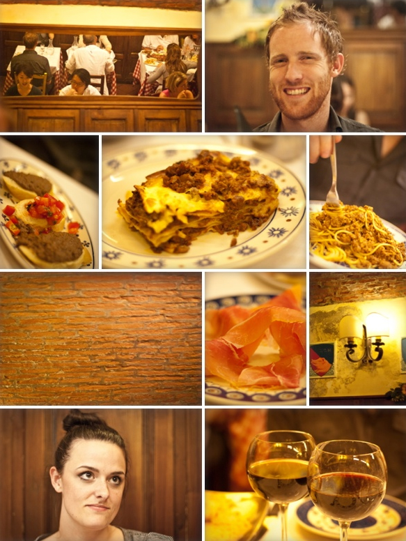 It was a very busy place! Two levels, rustic wood panelled walls and brick work. Florescent lighting and basic looking food. We were probably expecting too much, but I guess we got a very authentic experience. The waiters pretended to understand what we wanted when we asked for 2 coca-colas that we never received… twice haha pretty sure coca-cola is the same in every language but they seemed to understand everything else. We got the bruschetta, and crostini for entree and I got the melon and prosciutto. For mains – the lasagna and Rhys got the meat spaghetti. Meals were fine but everything seemed to taste the same and Rhys described it as cans of braised steak haha which he said was nice … nothing wrong with it but not what we expected! haha!