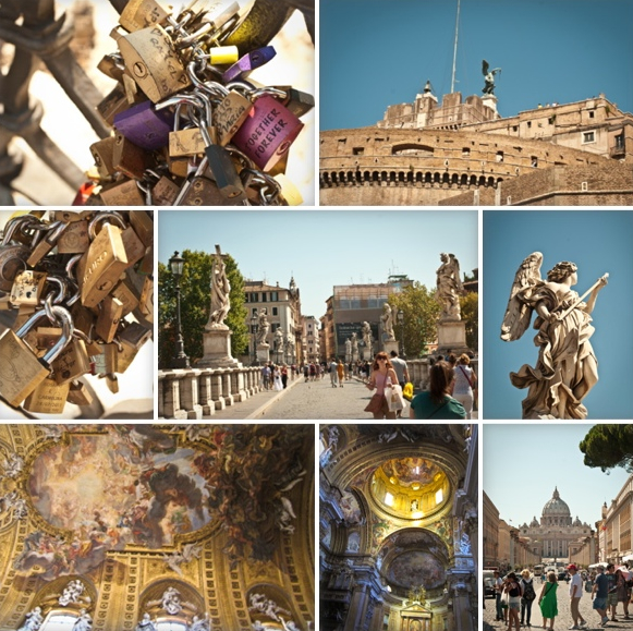 After a nice breakfast in the morning and some home made italian coffee, made in a real italian coffee maker, we walked down past the Vatican again and headed to the main part of Rome. As we walked over the bridge there were love locks all over the bridge, which is a custom that originated in Paris from what I have read. People put there names on the lock and attatch them to the bridge as a sign of their lasting love. Very cute!