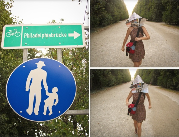 Next step find our way back to the metro so we can get to this coffee place … do you think we were anywhere near a metro haha no way, after meandering our way through a garden for a few hours we managed to find ourselves very far away. I decided carrying the map was too hard haha so I found another solution.This sign was a bit concerning … the picture looks like the little girl is trying to get away from a man haha and if you read the top it looks like a dyslexic sign for pedophileabrucke haha dodgy!