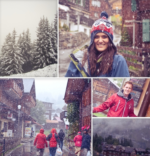 I went and rented some hiking shoes since my boots were soaked and were hopeless for snow! Then we headed to the cable car for the ascent to Allmendhubel. As we headed up we saw snow on the trees and on the ground but not very much. I know that normally there isn’t much snow up here as it is usually a good spot for hiking and seeing the wildflowers, but with the weather being a bit wild and it was snowing lightly in Murren, there was hope!