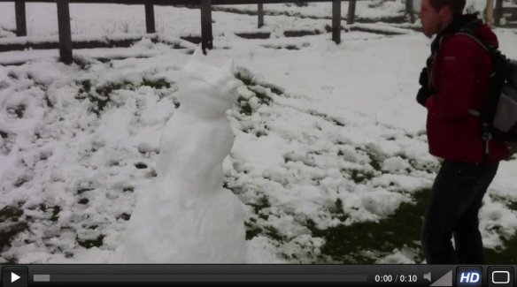 People have told me it isn’t that great and it just feels wet and slushy, but they obviously didn’t experience the fresh powder we got to see. It wasn’t very deep snow, but it was fresh so it was awesome! It was like icing sugar under your feet, soft powdery and wonderful! We played for hours and got way too many photos! We made a snow man that we named snow cat and Rhys destroyed it haha