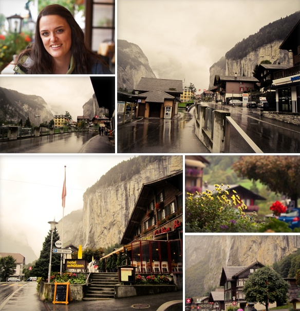 When we got to Interlaken we took the connecting train to Lauterbrunnen. We stopped there because I have seen photos of it while doing my travel research and I wanted to see what it was like up close. Lauterbrunnen is known for its valley setting with cliff faces and mountain bordering the town with huge waterfalls gushing down the cliff face over the town. With beautiful green feilds around and a view of the snowy alps it’s stunning to see! It was quite foggy the day we were here though so we couldn’t see the alps, so I hadn’t seen snow yet, but I was hopeful I would see it within the next day.