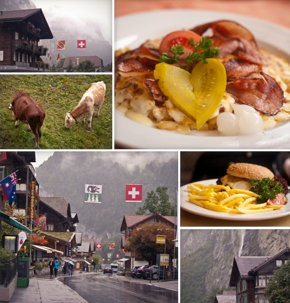 We stopped to have a bite to eat at a hotel in Lauterbrunnen. The potato rosti is a specialty around here, and the alpine cheese is also a very popular choice so I decided to get the “trucker rosti”, which is a potato rosti topped with a beef sauce, cheese and bacon! Heart attack worthy! Delicious, but it could kill you! haha! Rhys got a burger and he loved it!