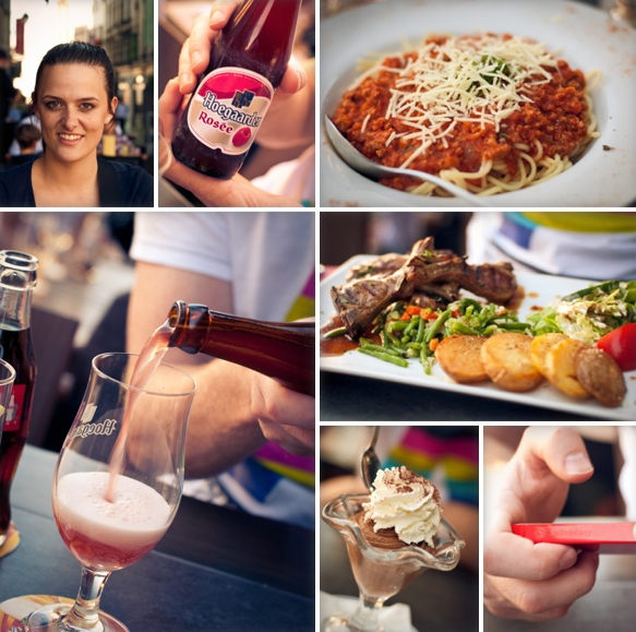 We walked into the center of the shopping area of Brussels “Louise” then we walked toward old town for some lunch. We ended up at a nice little Belgian pub. I got a really yummy spaghetti and Rhys got lamb chops! Great food and accompanied with delicious raspberry beer! The Hoegarten Rose was fantastic!! I hope we can find it at home.
